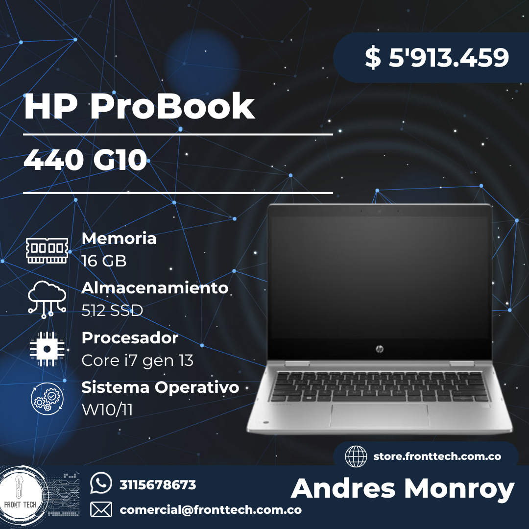 ¿Listo para trabajar con potencia y estilo? El HP ProBook 440 G10 te espera en Front Tech, tu tienda de tecnología confiable.