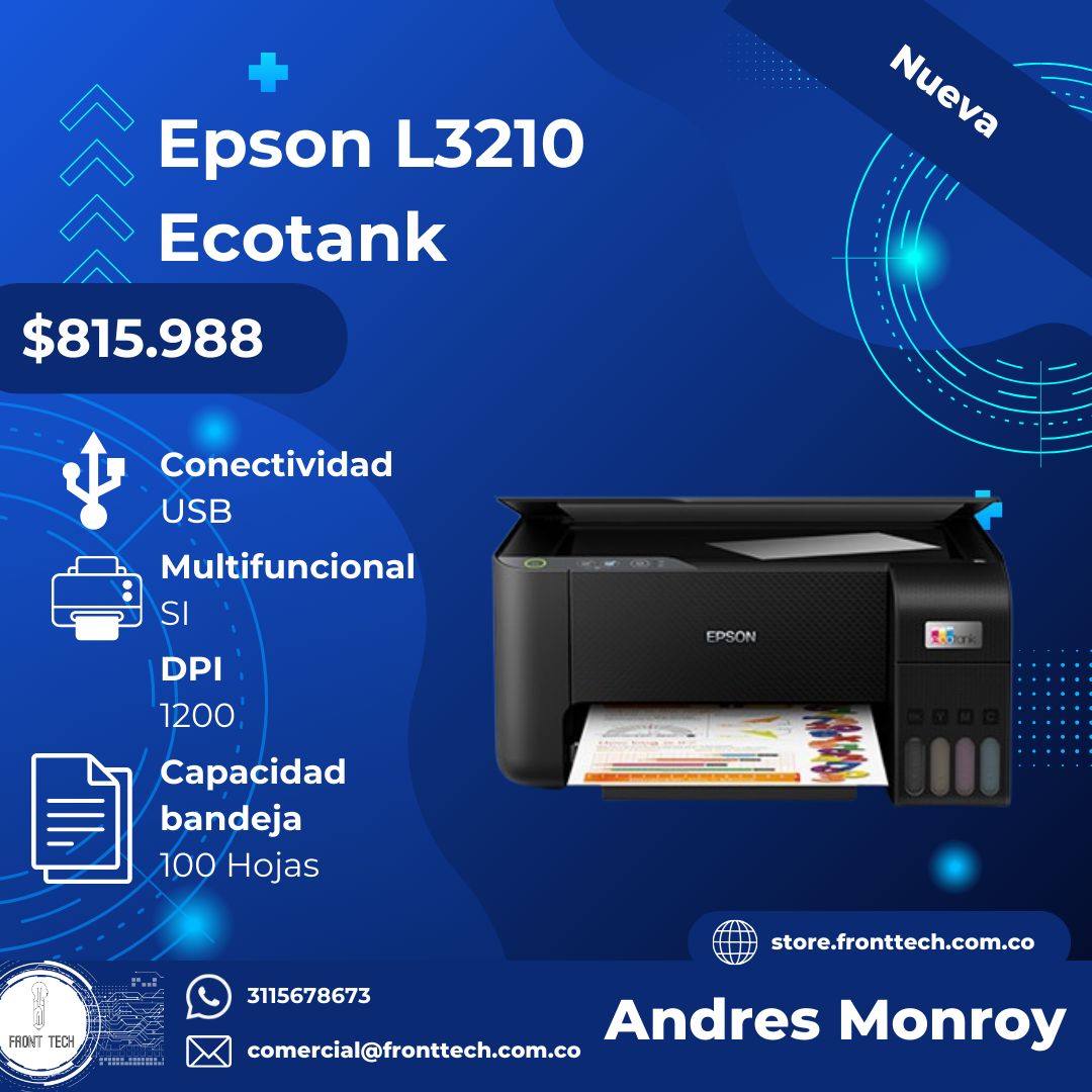 ¿Listo para llevar tu impresión al siguiente nivel y reducir costos? La Epson L3210 EcoTank te espera en Front Tech, el lugar donde la tecnología y la economía se unen para acompañarte siempre.